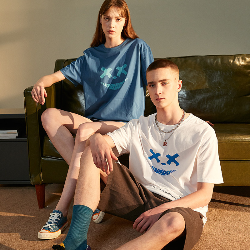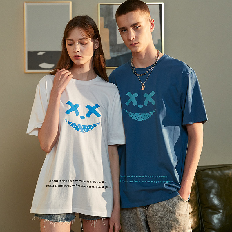 Radiohead little devil smiling face T-shirt couple Summer creative splashing ink men's short sleeve cotton ins female loose tide
