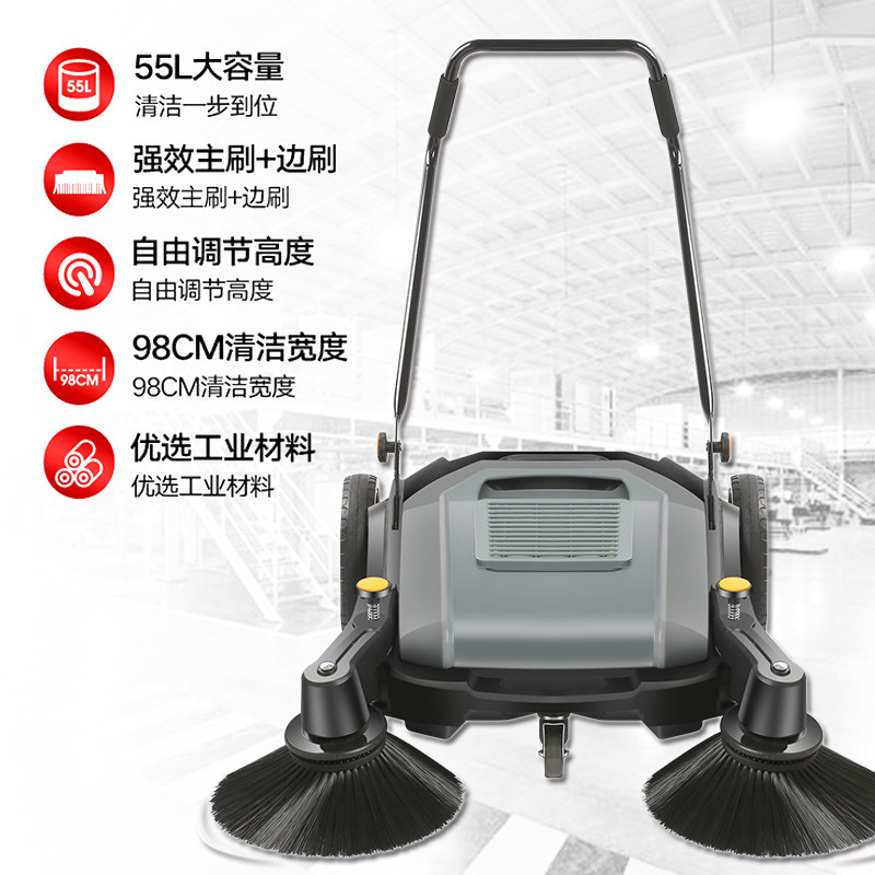New industrial sweeper-powered motorless factory workshop with farm road warehouse dust sweeping car