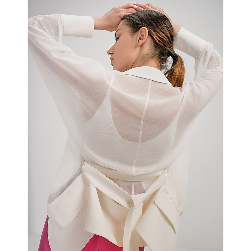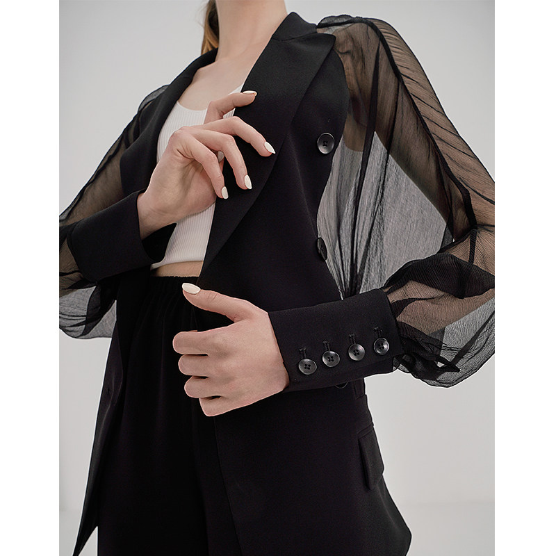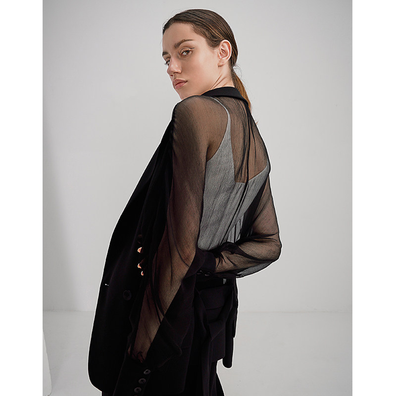 SOULKISS Linen Stitching Perspective Long-sleeved Thin Sunscreen Suit Jacket Women's Summer