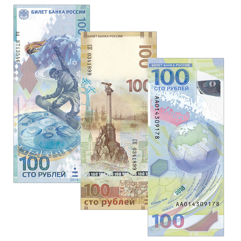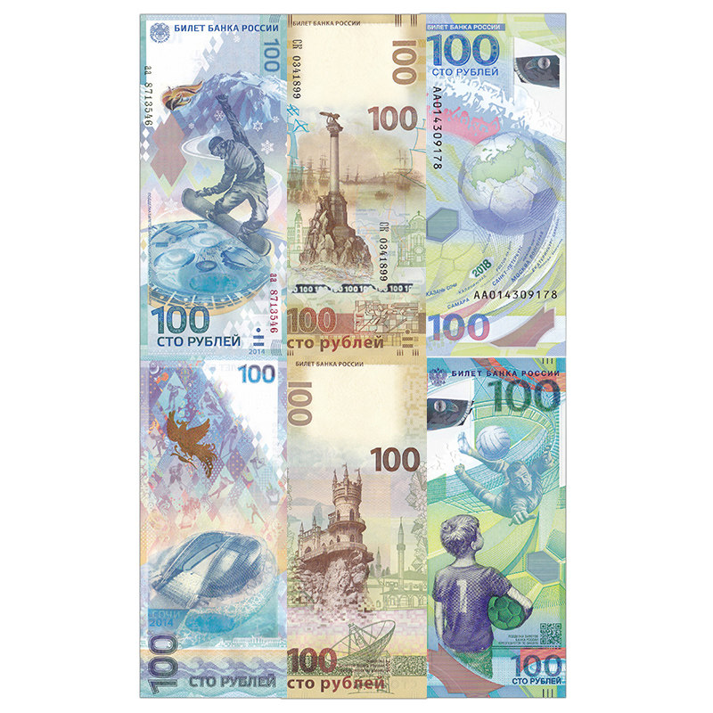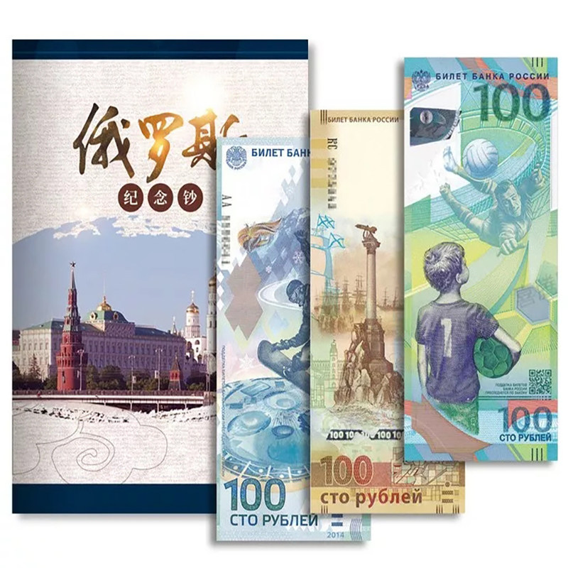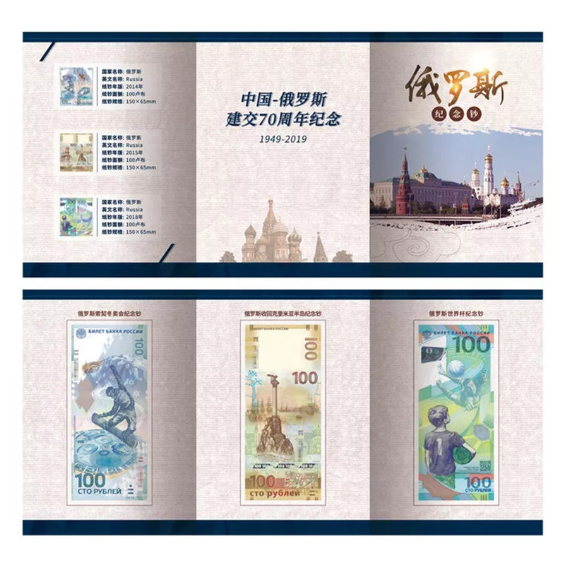 (Gift Book) Russian Commemorative Banknotes 3 World Cup Crimea Sochi Games Number Random