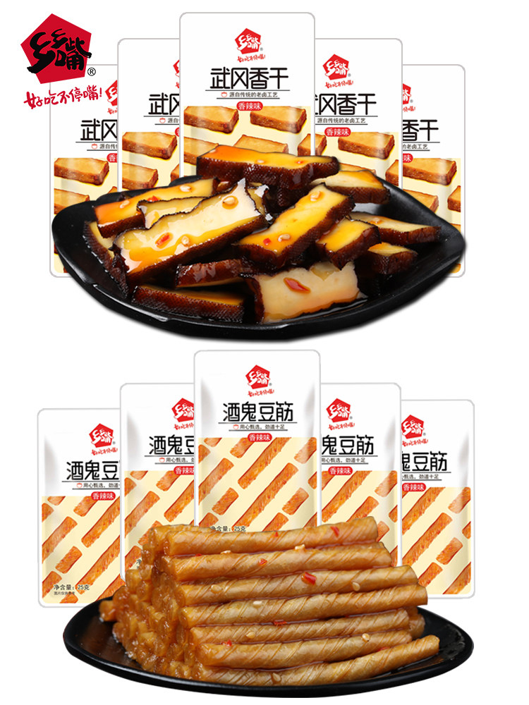 Township Mouth Thick Bean Dry 520g Hunan special beans Dry spicy and spicy little snacks Dried Spicy Strips Casual Snack Gift Bag