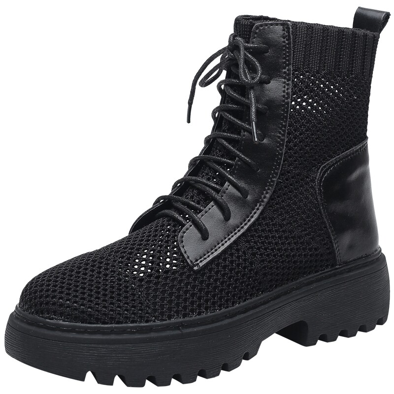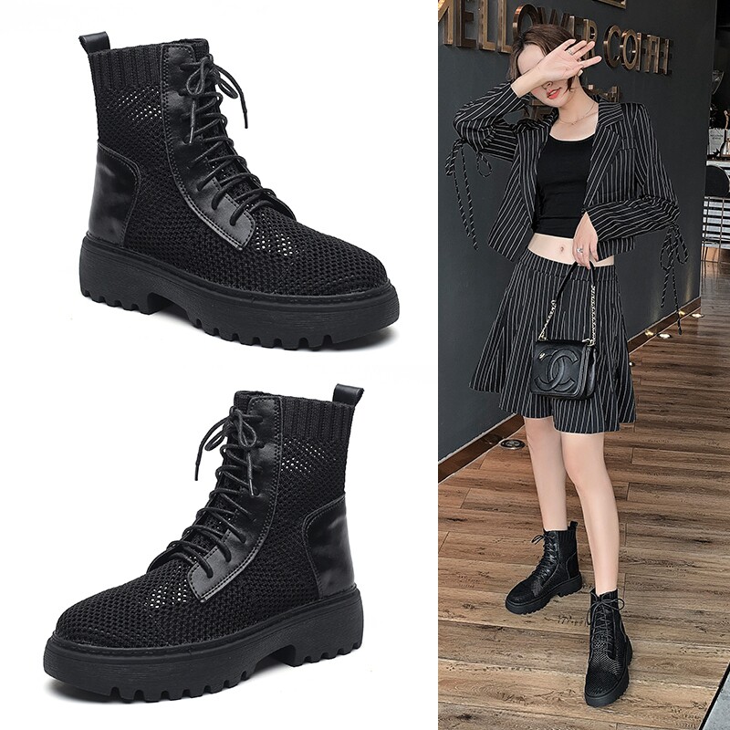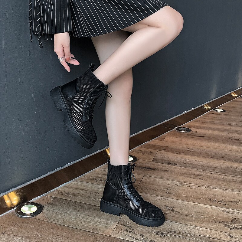 Martin Boots Woman Summer Thin hollow mesh boots Breathable Mesh Veil Slim Boots Genuine Leather Black Short Boots Woman's Summer Lady Boots