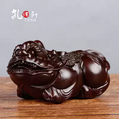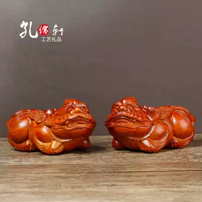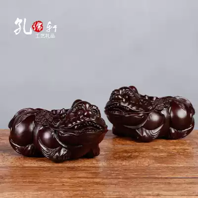 A pair of wood carving Pixiu ornaments, town house, gather wealth, Piqiu size, lucky home living room, office opened