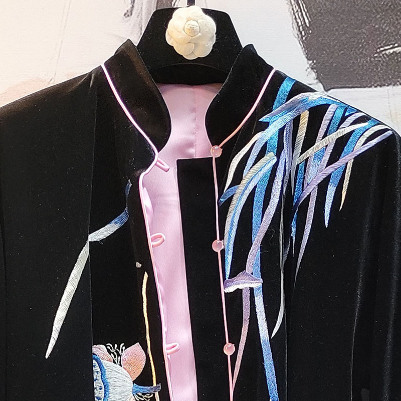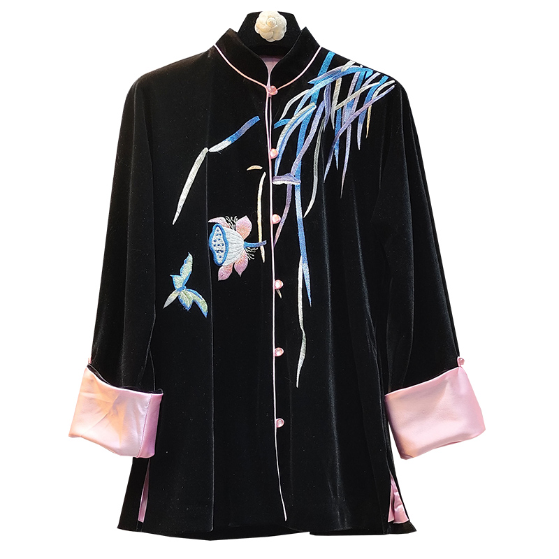 Gold velvet embroidered short style jacket woman middle country wind women's clothing improvement new Chinese collar long sleeve loose large size with large size
