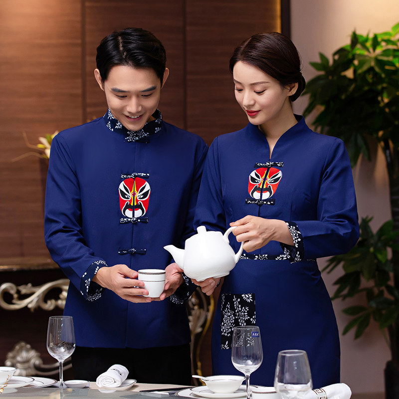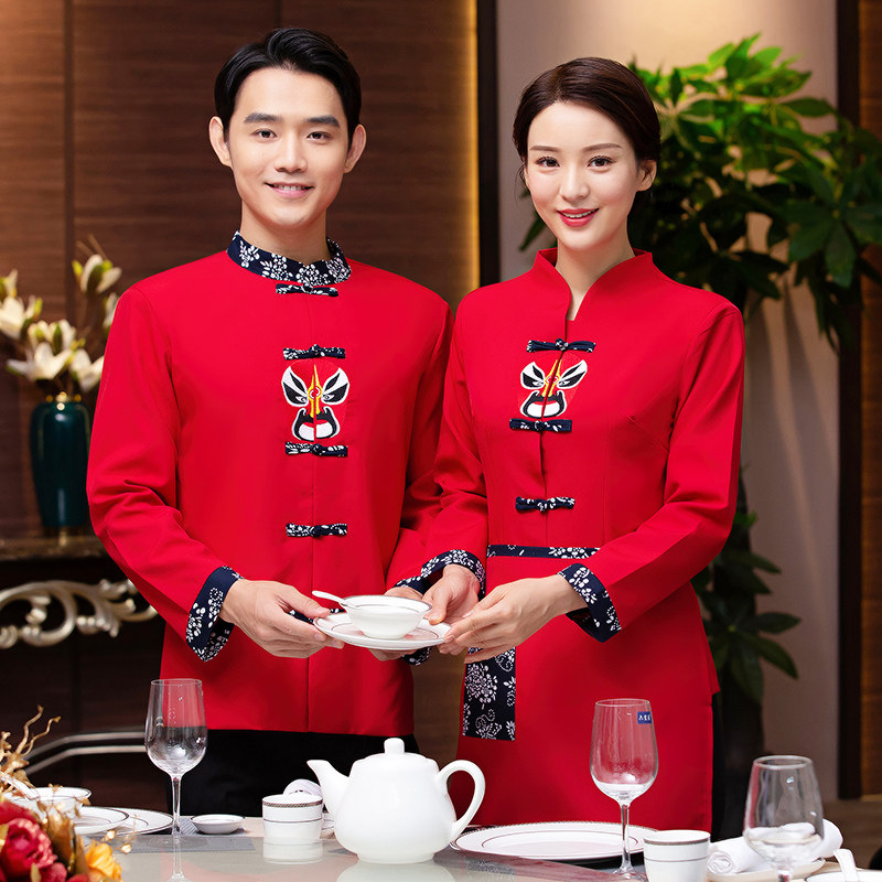 Fire Boiler Shop Attendant Working Clothes Chinese Retro Hotel Dining Room Leisure Farm Hotel Waiter Long Sleeve Autumn Winter Clothing