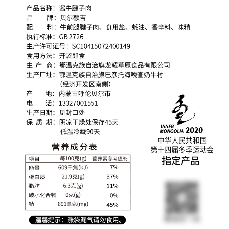 (New Products) Bull Front Leg Tendons Meat Sauce Beef Marinated Beef Open Bag Ready-to-eat 250g * 2 Bags