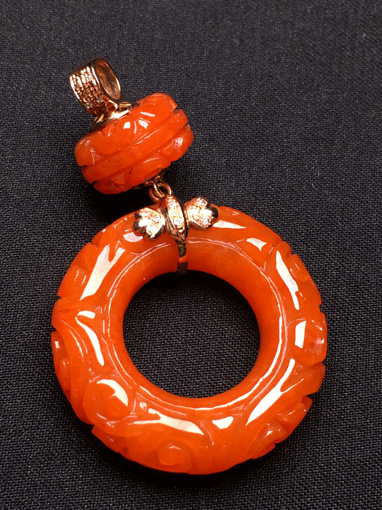 Natural red emerald ice pendant 18K gold inlaid lucky ring jade hanging with certificate to give gifts to men and women