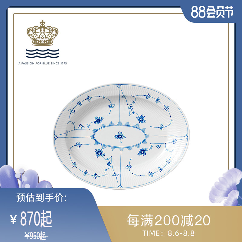 RoyalCopenhagen Royal Copenhagen Flat edge Tang Grass oval plate Nordic tableware plate Household