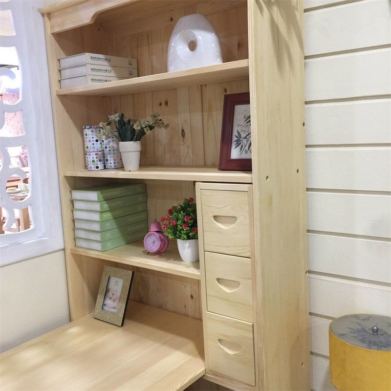 Zhisheng solid wood desk bookshelf combination table Simple modern home children's study desk Student writing desk