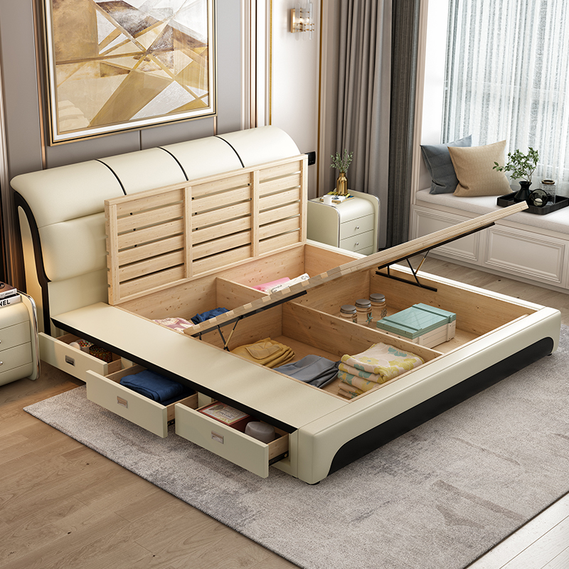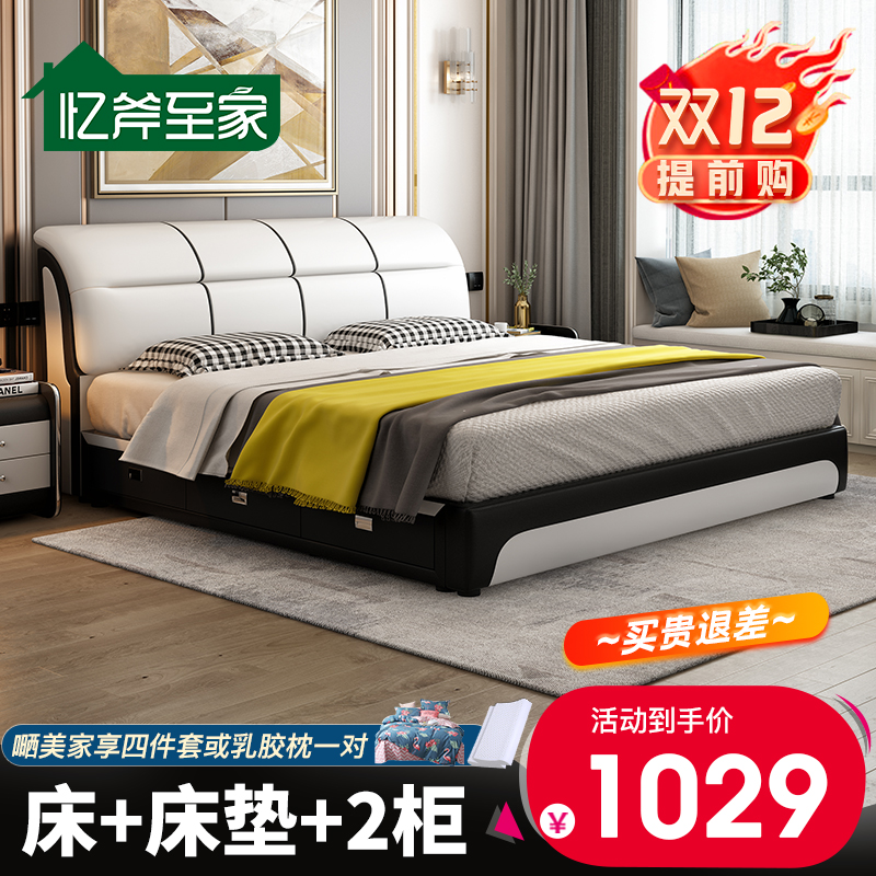 Eco-friendly leather single bedside single bed upgrade solid wood frame 300 leather bed 2 cabinet leather bed 3E coconut palm mattress 2 cabinet leather bed latex cotton mattress 2 cabinet leather bed 9 partition 5D latex mattress