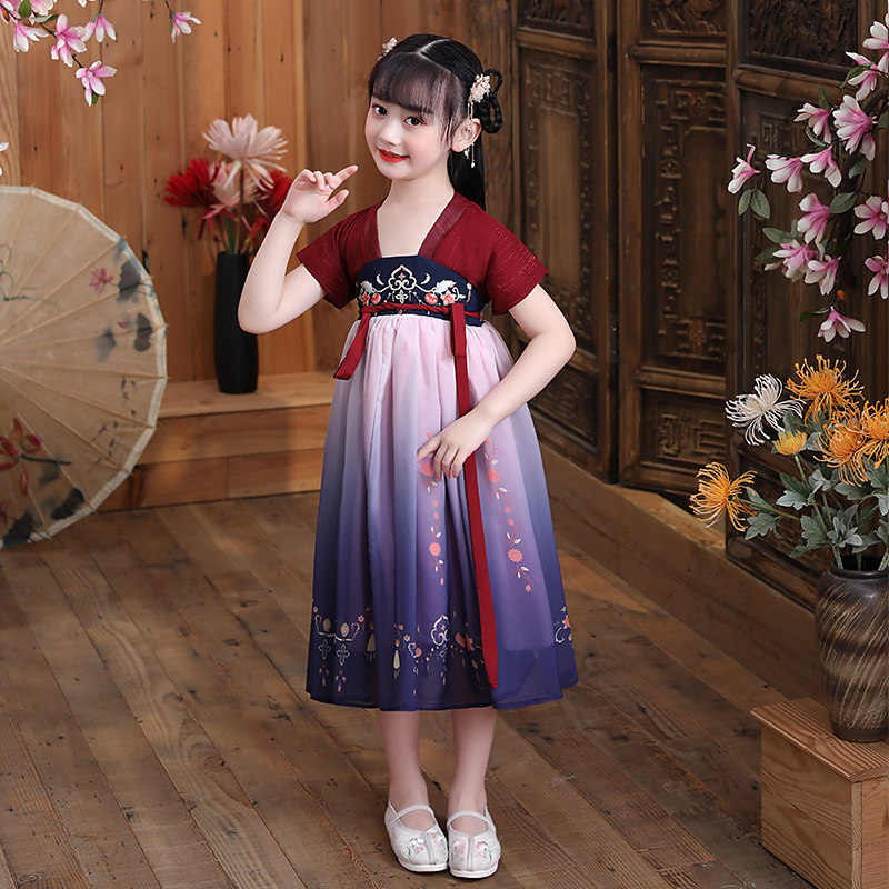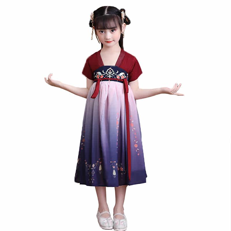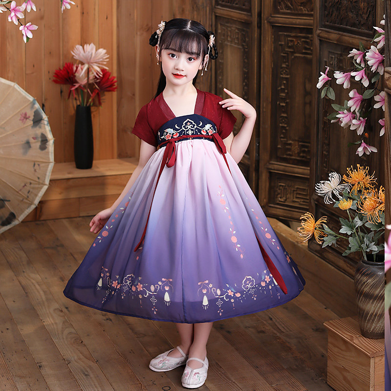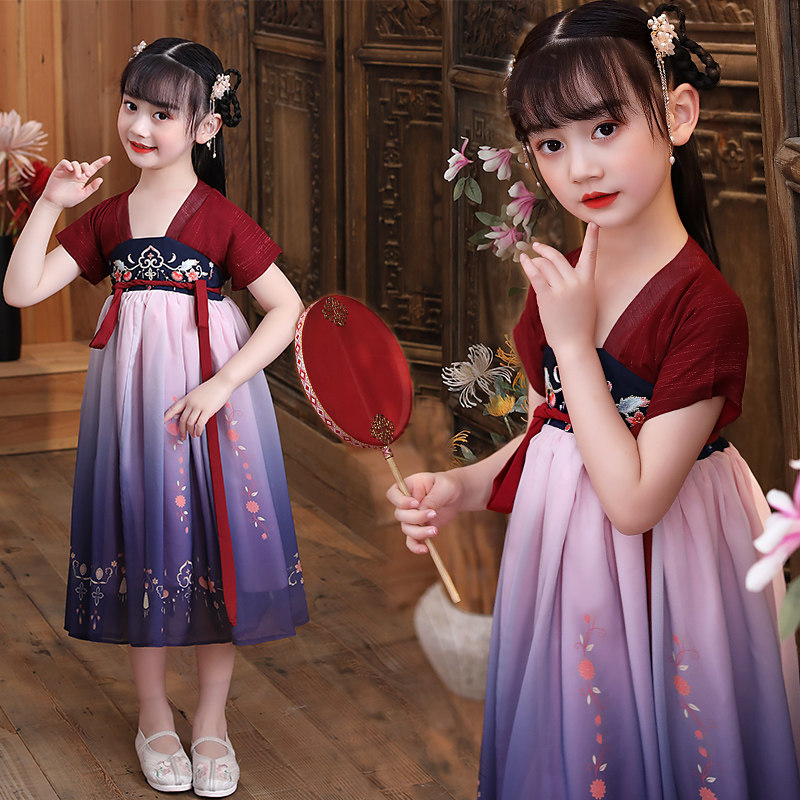 Autumn girls' Hanfu dress Chinese style elegant fairy long skirt ancient style improved children's middle and big children's skirt new