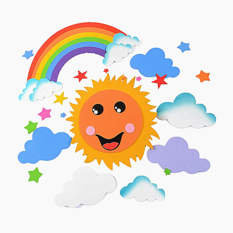 Kindergarten Wall Wall Ring Creation Decoration Colorful Sun Rainbow Clouds Blue Sky White Clouds School Board Newspaper Children House Arrangement