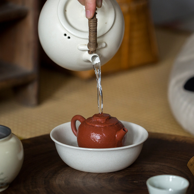 Handmade grass and wood ash pot can be raised to raise open pieces of drizzle pot tea tray water storage deep bowl tea plate Jingdezhen kung fu tea set home