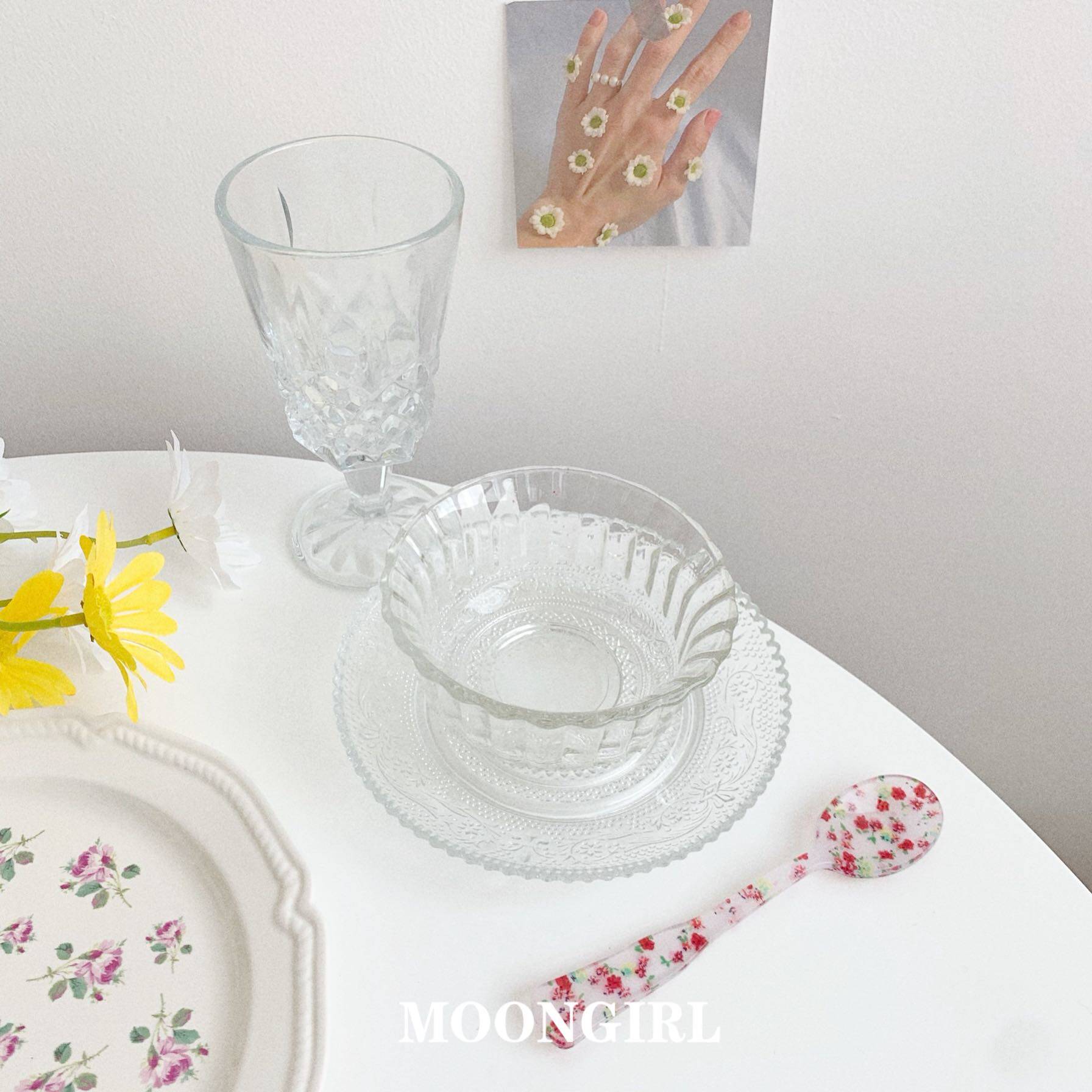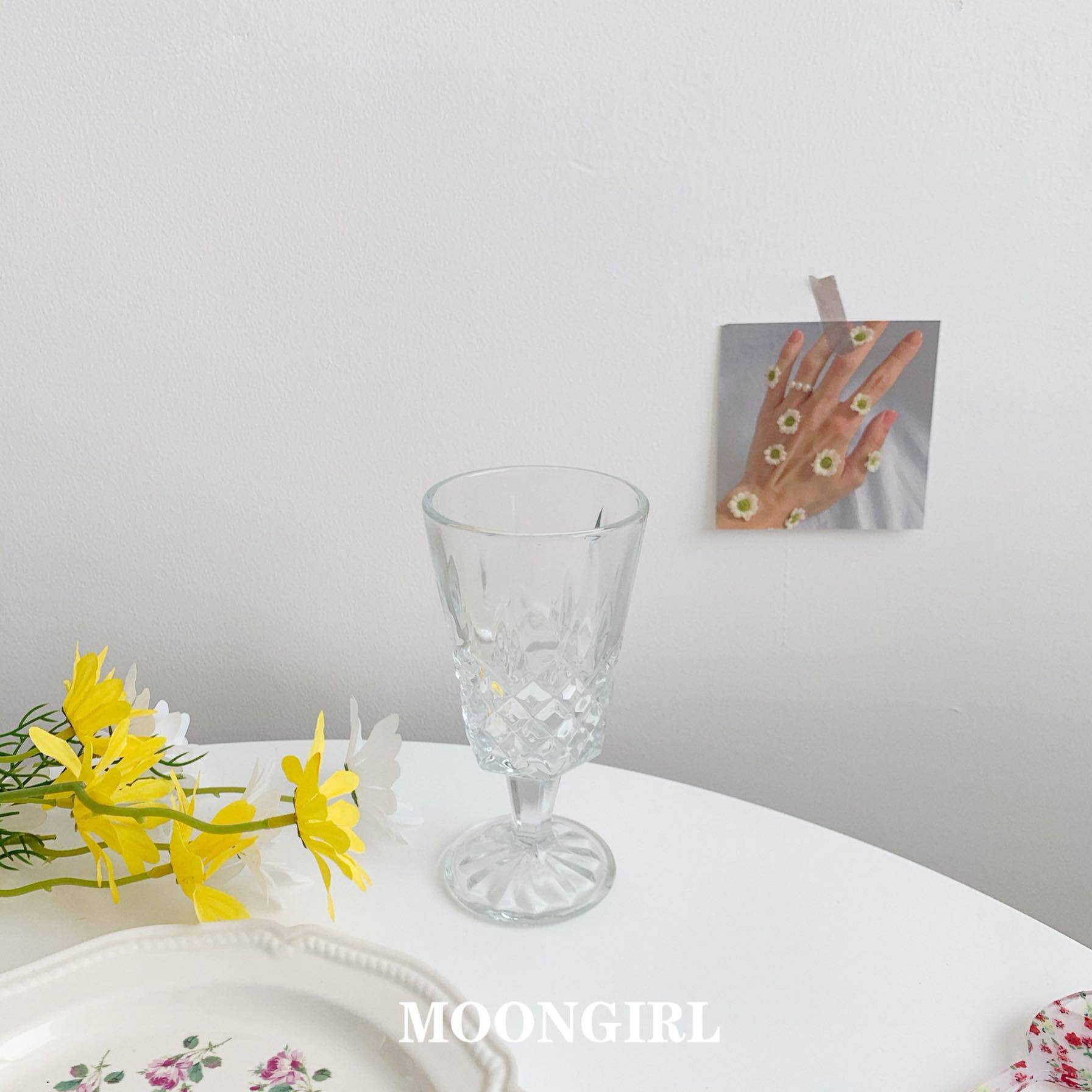 Home ins retro vintage French girl glass goblet glass dishes carved breakfast pose