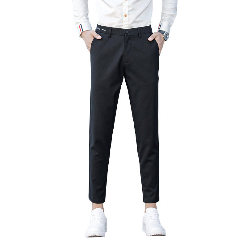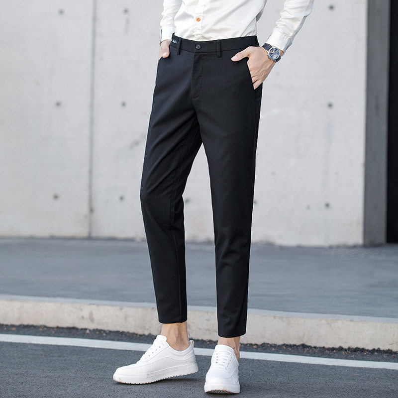 Ice silk nine-point pants men slim small feet Korean version of casual 9-point small trousers men show high summer thin section free ironing pants