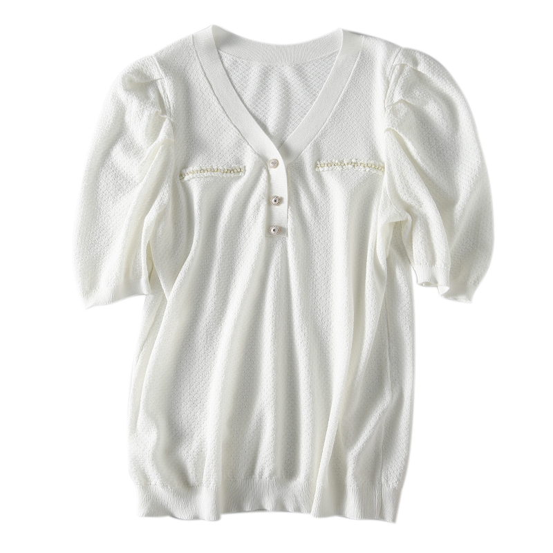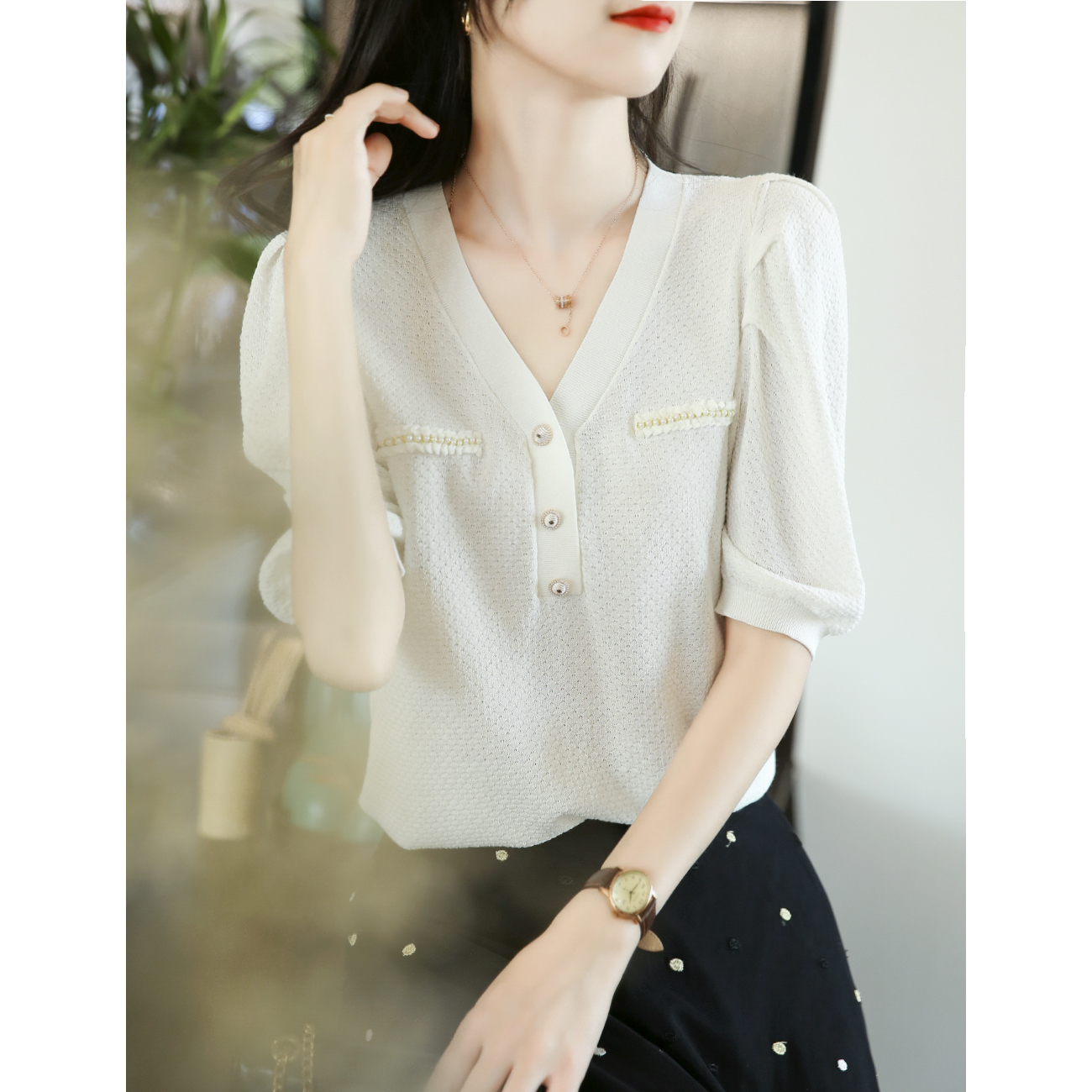 (Broken code kills non-refundable and non-exchangeable) French lady style breathable and cool V-neck button wool sweater