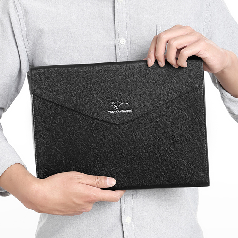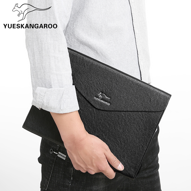 Men Clip Bag Mesh Red Genuine Leather Large Capacity Business Casual Envelope Bag A4 Paper File Bag Bull Leather Male handbag