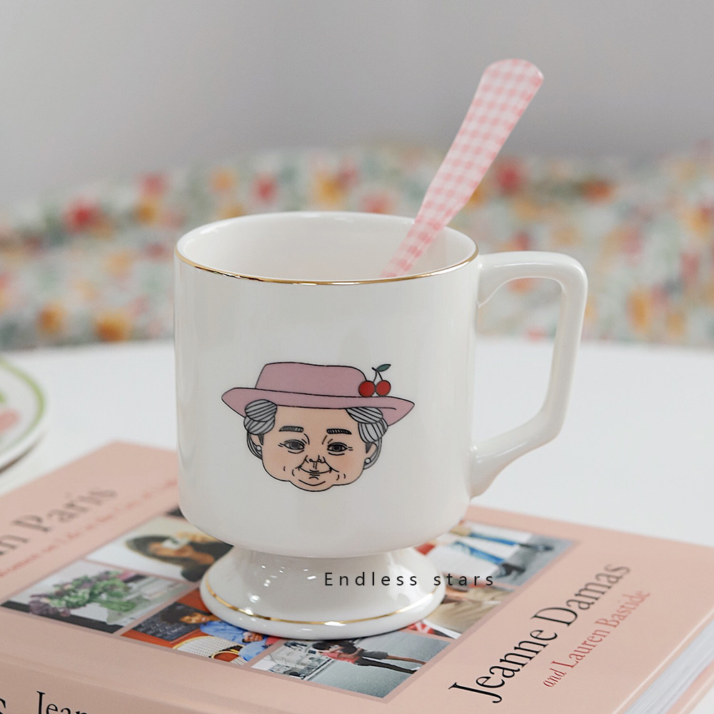 Creative Personality Valentine's Gift Couple Cup Cute Granny Mug Phnom Penh Retro Ceramic Cup Coffee Cup