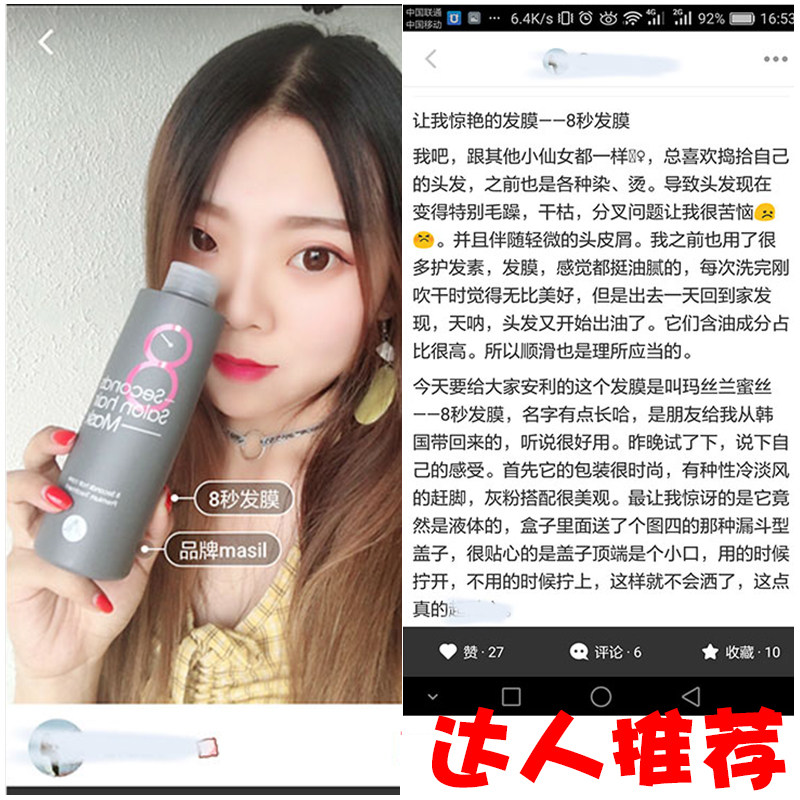 Korea MASIL 8 seconds hair mask pour film to improve frizz conditioner Dry steam-free spa smooth female split treatment