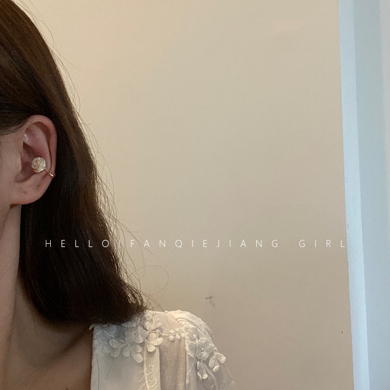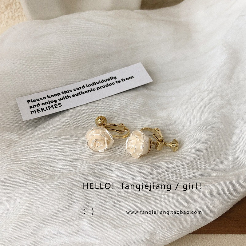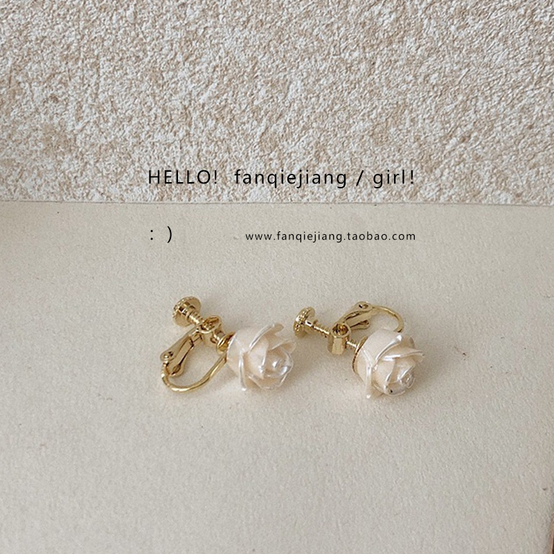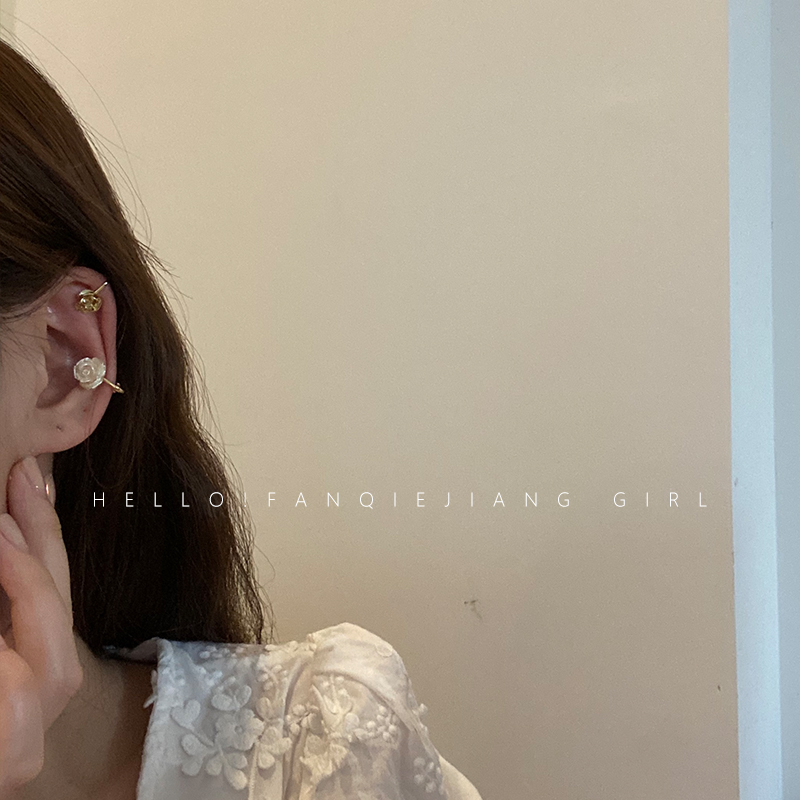 Style Oil Painting Sensation White flower ear clip No earbugles Fairy Gassen Ensemble Super Fairy Superior sensational ear osteoclaves earrings French style
