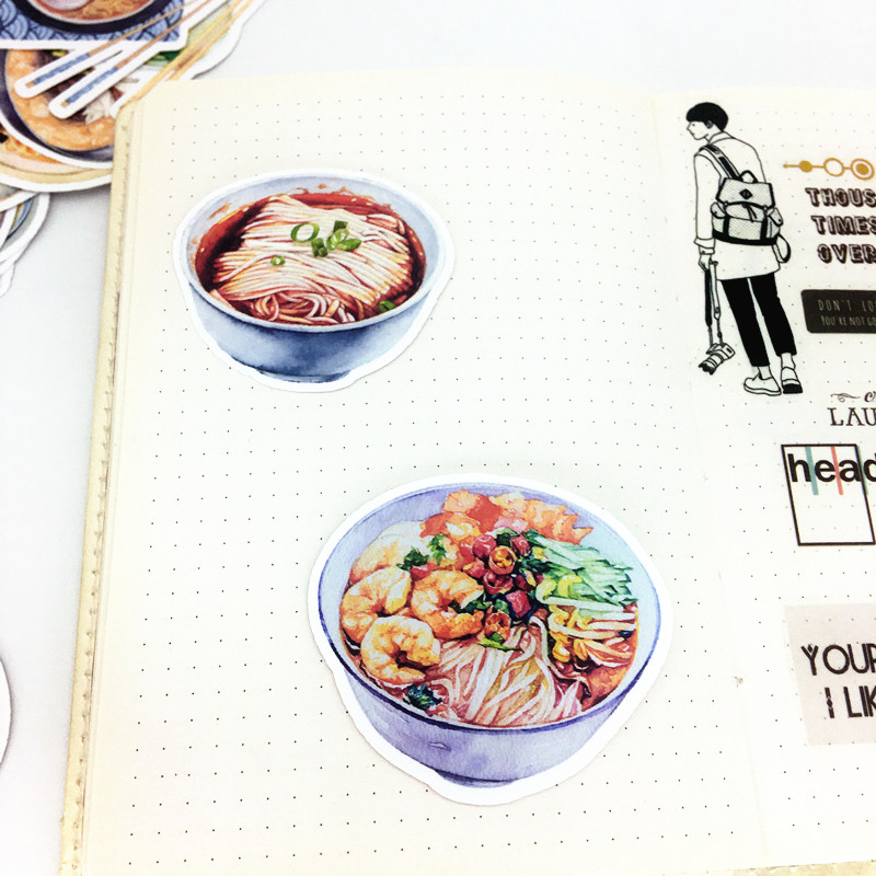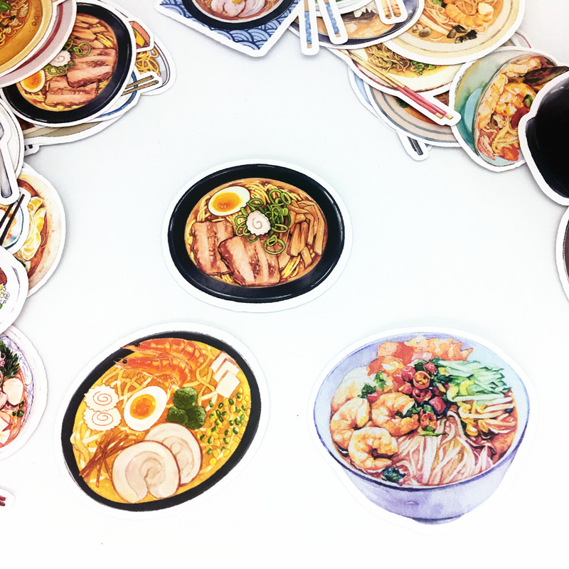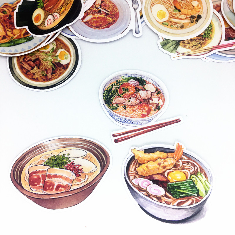 Food hand account stickers ramen noodles hand account stickers diary food illustration cartoon fried noodles seafood noodles hand-painted