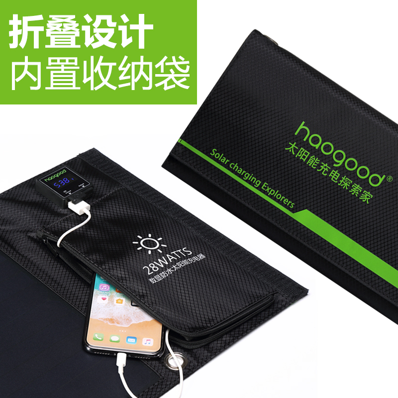 haogood 5V digital display solar charger sunpower photovoltaic panel 28W outdoor portable folding bag