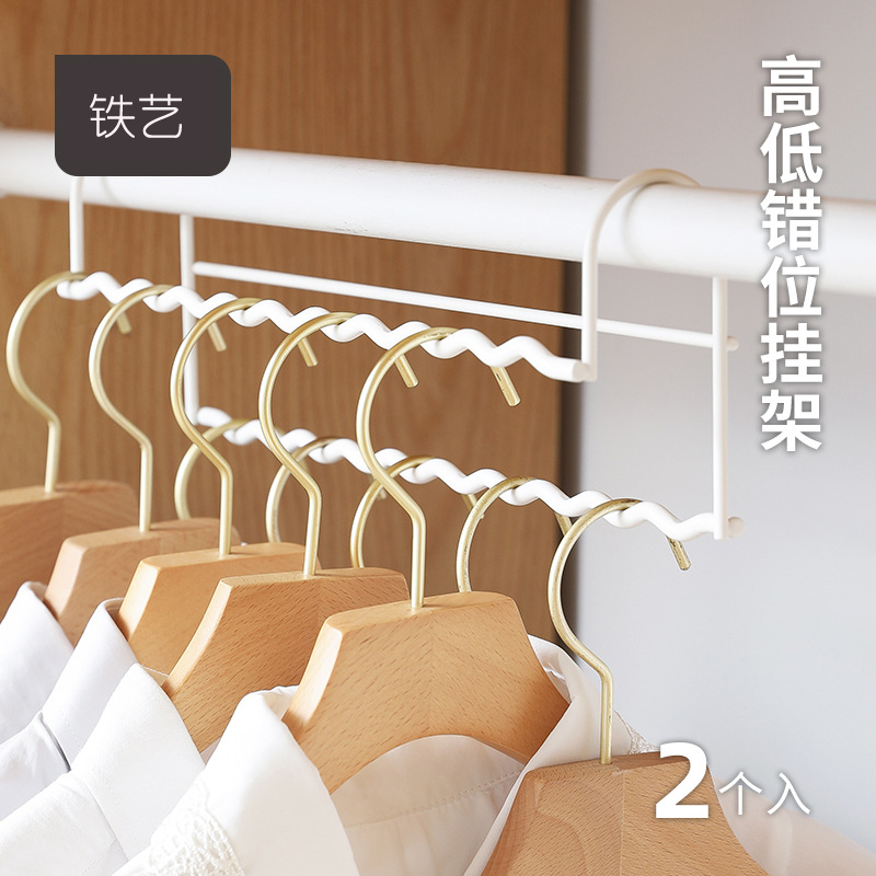 Doubled preferably high and low dislocation hanger rack 2 clothes for home bedroom wardrobe Province space iron art metal shelf