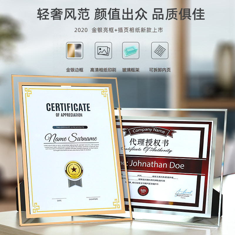Crystal medal authorized card custom plaque custom agent supply dealer cup honor frame certificate production