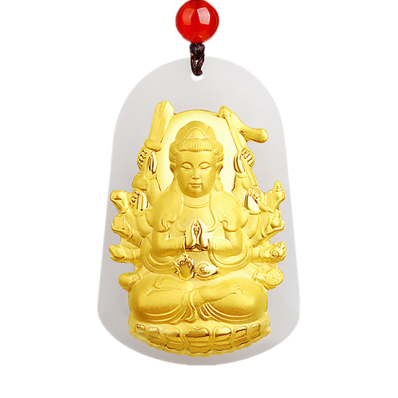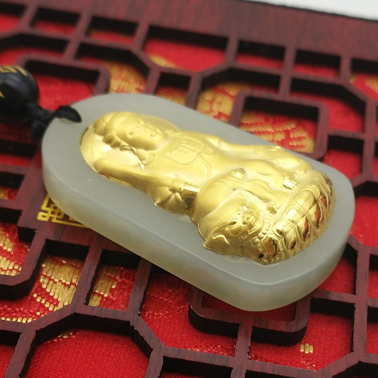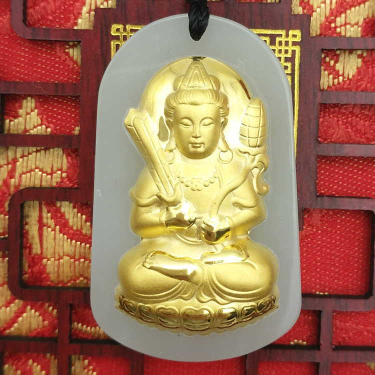 Golden inlaid jade Eight great patron saint pendant natural and field jade inlaid gold Buddha necklace jade pendant male and female jade pendant pendant