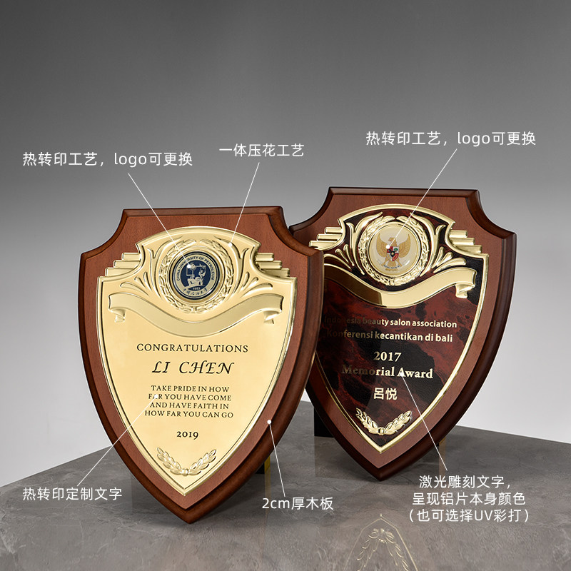 Shields Honor Plaque Medal Customized to do Authorized High-end Solid Wood Certificates Gold Leaf Distribution Agent