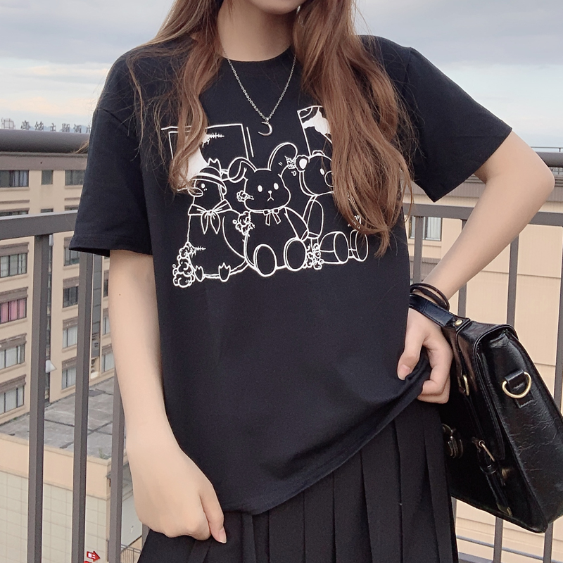 Chestnut honey original white T-shirt female JK short-sleeved top loose student long-sleeved new black round neck T-shirt