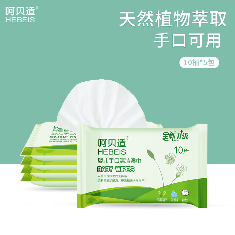 Habitable baby hand-mouth cleaning wet towels 10 slices * 5 packs baby newborn baby with portable packaging mini
