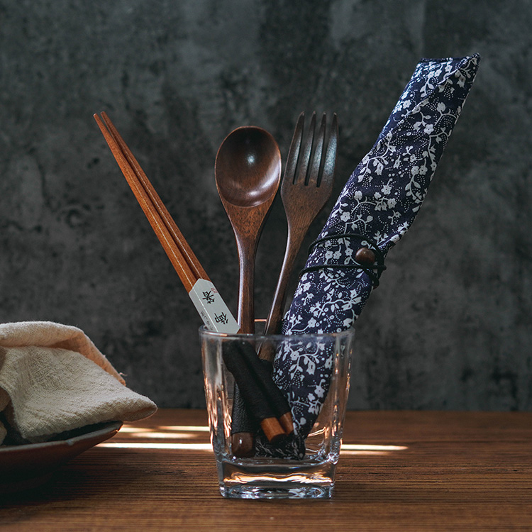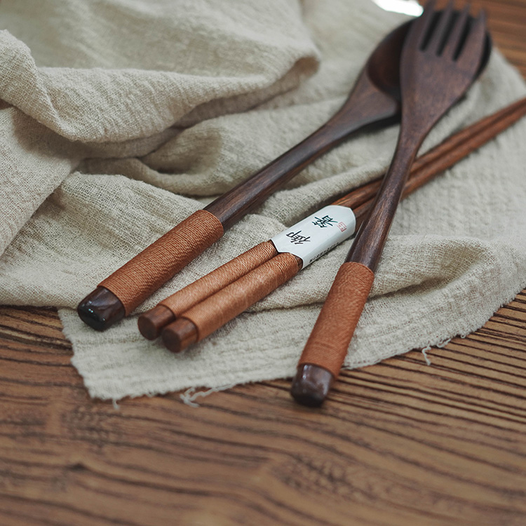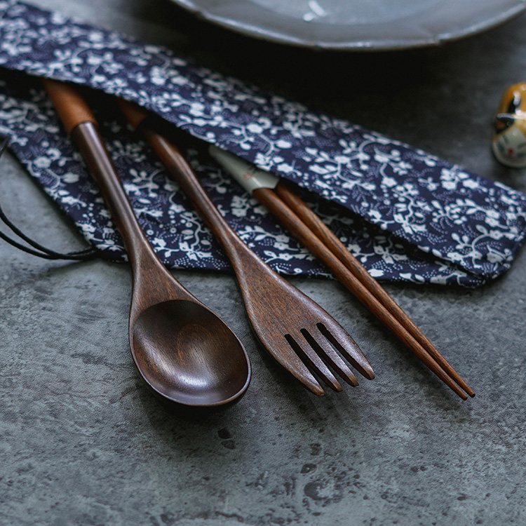 Spoon and fork chopsticks black line 3-piece spoon and fork chopsticks Khaki line 3-piece spoon and fork chopsticks black line cloth set Spoon and fork chopsticks Khaki line cloth set