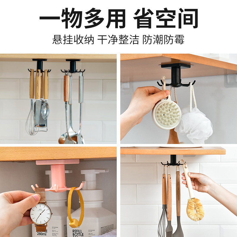 Kitchen Lower Rotary Hooks Shelf Creative Slime Hook Free of holes Wall Hanging Rack Style Containing Powerful Adhesive