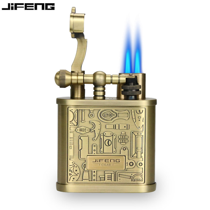 JIFENG Monsoon Cigar Scissors Lighter Punch Hole Instrumental Fight Fire Stone Breaking Desk Smoke Furniture Gift Suit-Taobao