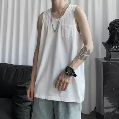 Leisure sports vest men's fashion cards ins summer pure white sleeveless T-shirt trend hip hop loose boys fitness