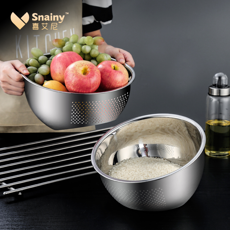 304 stainless steel washing rice sieve tao rice basin kitchen household water filter basin draining basket washing vegetable basket tao rice artifact