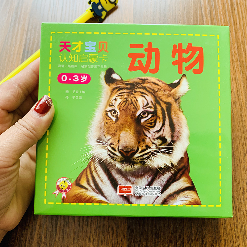 1-2-3 year old baby look at the picture to recognize the animal card color pattern cognition preschool toddler kitten dog chicken duck card toy
