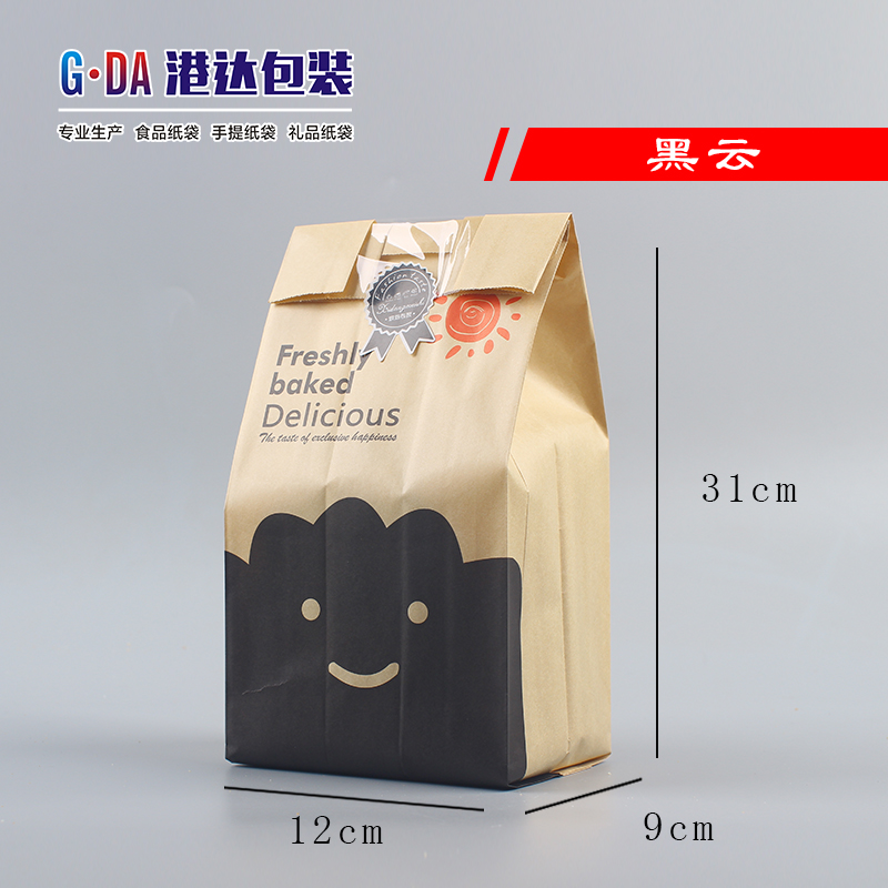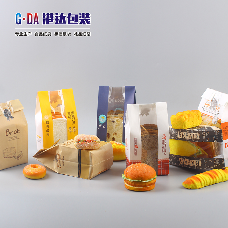 Manufacturer Kraft Paper Bag Custom Open Window Transparent Bread Bag Disposable Baking Food Square Bottom Toast Bag Spot