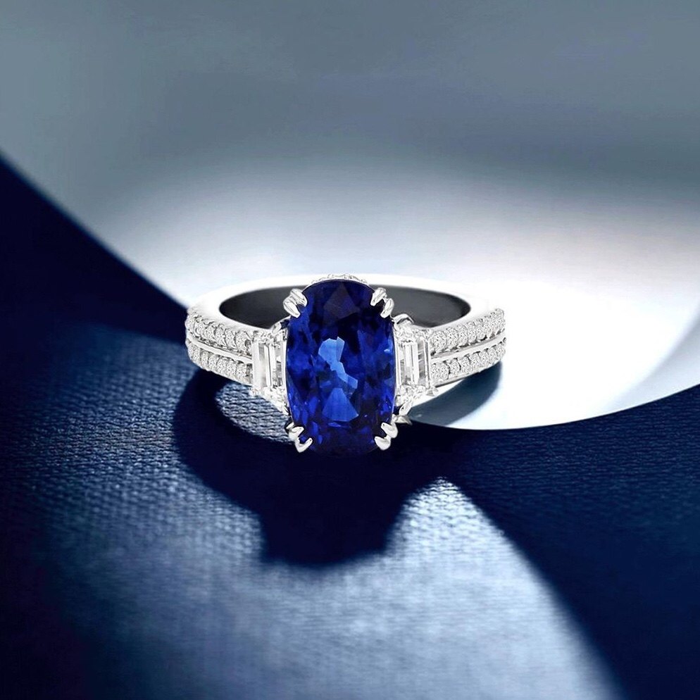 GRC certificate artificial cultivation Royal Sapphire ring pendant 18K gold Cornflower necklace Jewelry to map customization