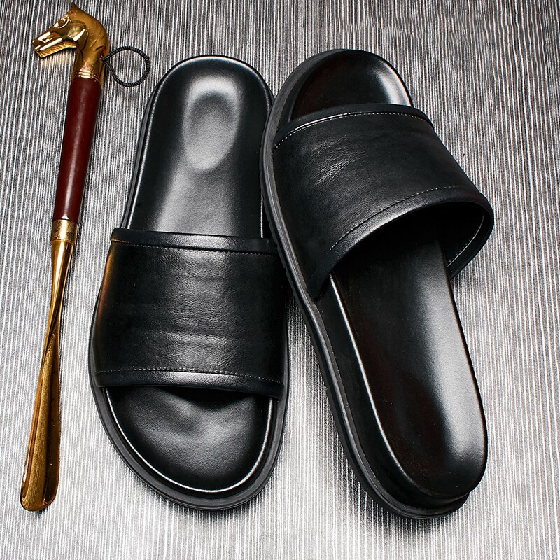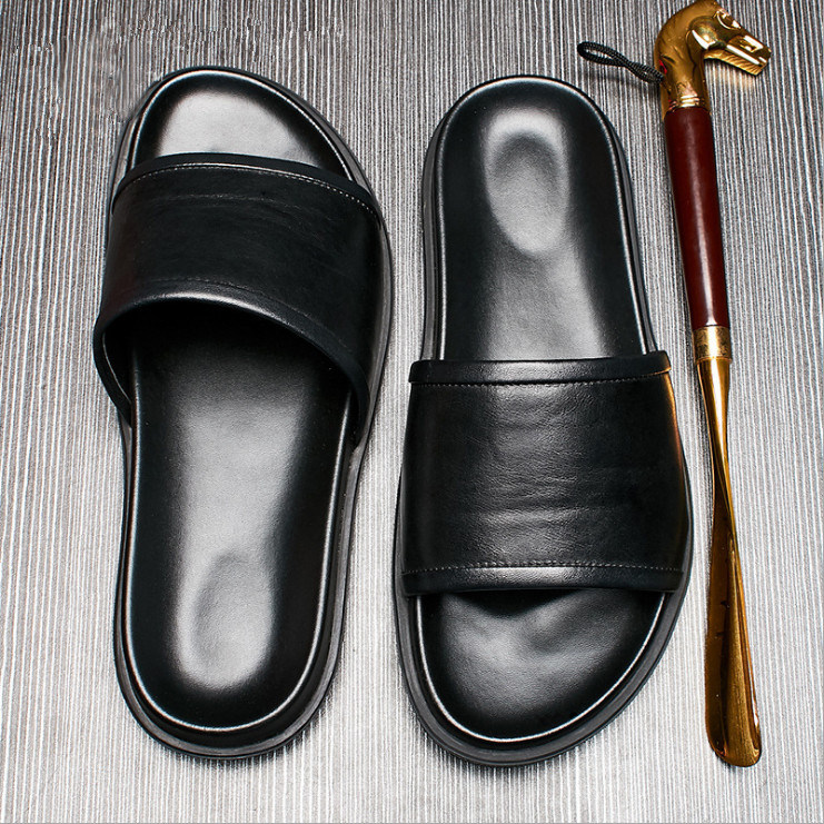 Male Slippers 2022 New Summer Sloth People Shoes Han Edition Casual Soft Bottom Trendy Genuine Leather Men's Slippers