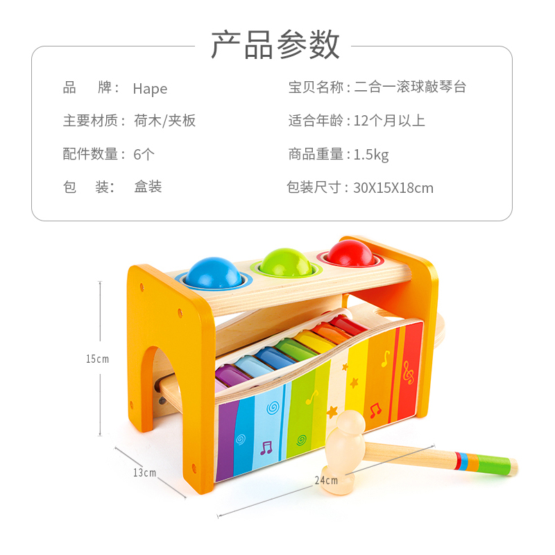 Early melody percussion table (three-ball percussion) (send Hape bricks + wooden trolley) Five-in-one dynamic band (send Hape bricks + wooden trolley) Early melody key xylophone (send Hape bricks + wooden trolley)