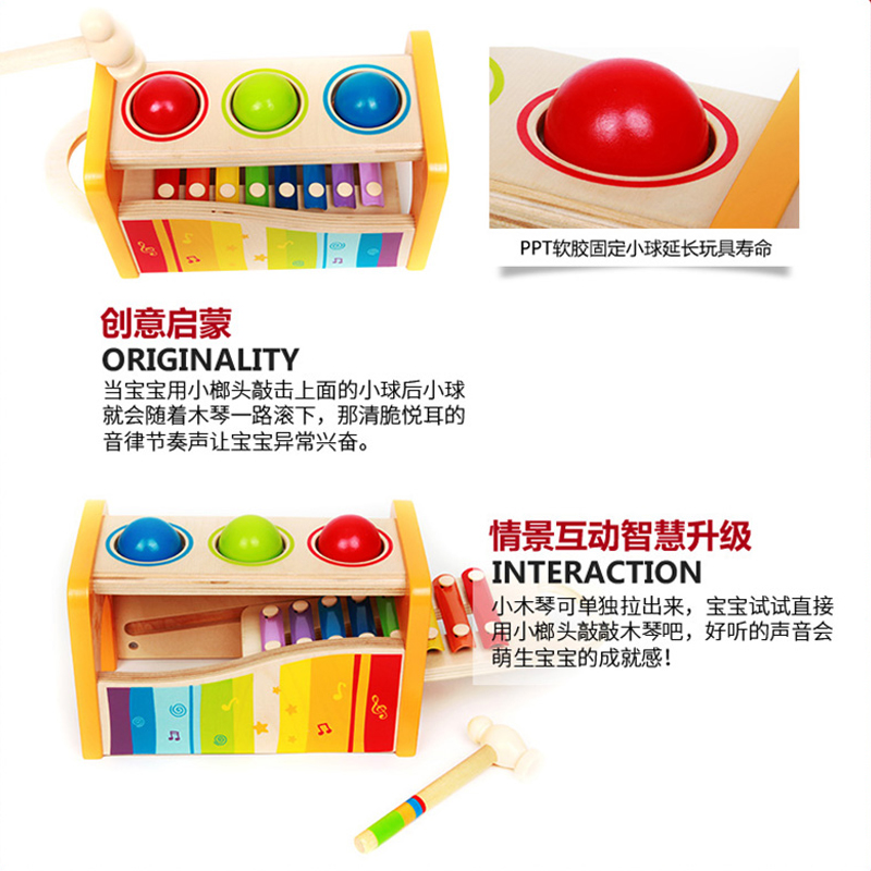 Early melody knocking piano table (three balls knocking) (send Hape bricks + wooden trolley)