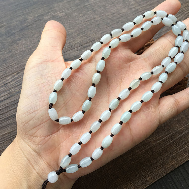 Natural jadeite A goods rice bead bucket bead chain hand-woven pendant rope gold jade pendant jade bead hanging rope - Taobao