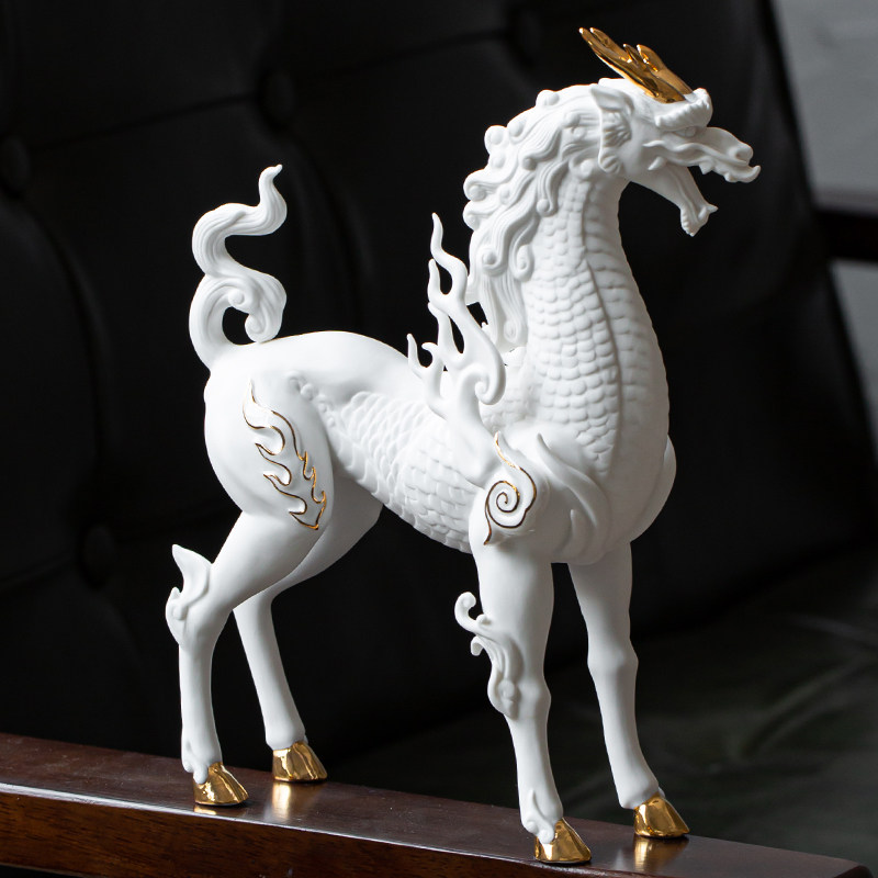 Ink Dyeing and Fragrant Defied White Porcelain Ceramic Fire Kirin Xianlin Handicraft Swing Accessories for Home Merchants Opening Gift Gift