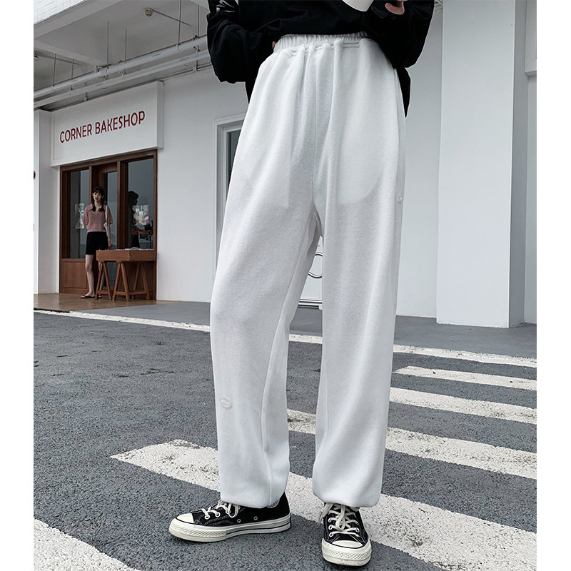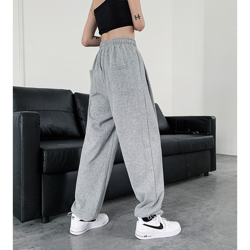 Why foam gray sweatpants women's pants high waist drawstring pants loose straight pants casual pants spring and summer thin models of health pants