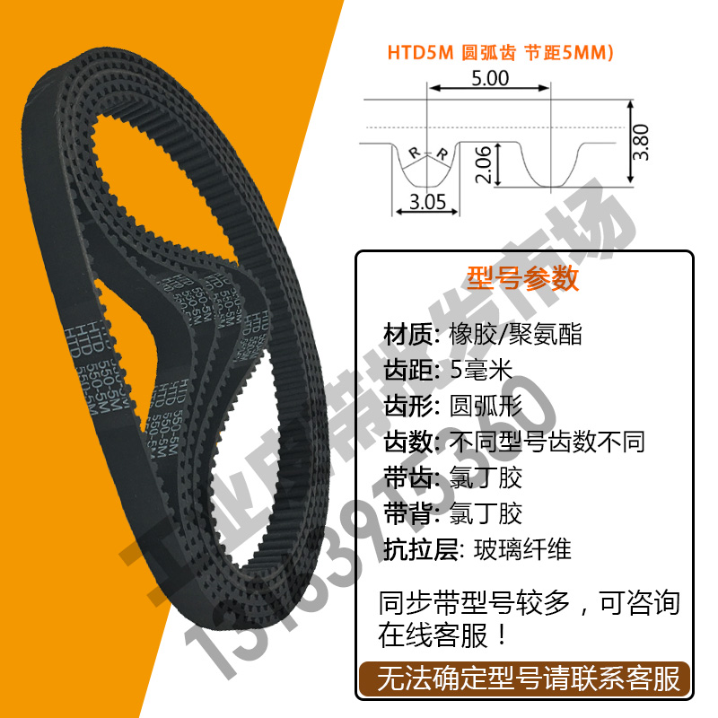 Industrial synchronous belt HTD 5M265 5M270 5M275 5M280 transmission belt rubber belt pitch 5