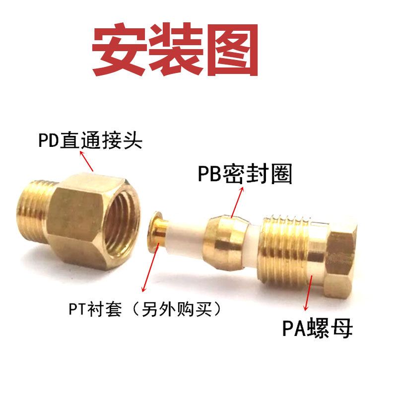 PD nylon tubing connector plug 4 6 8mm tubing connector Copper connector Card sleeve Oil circuit connection inner card straight through