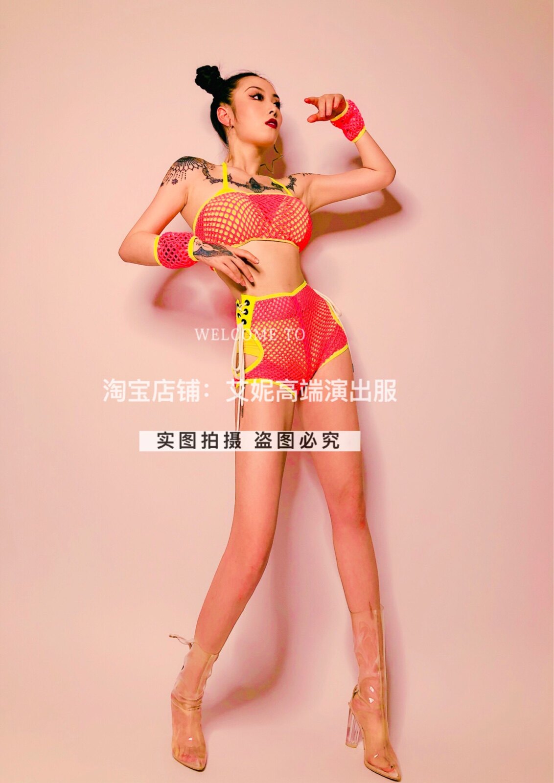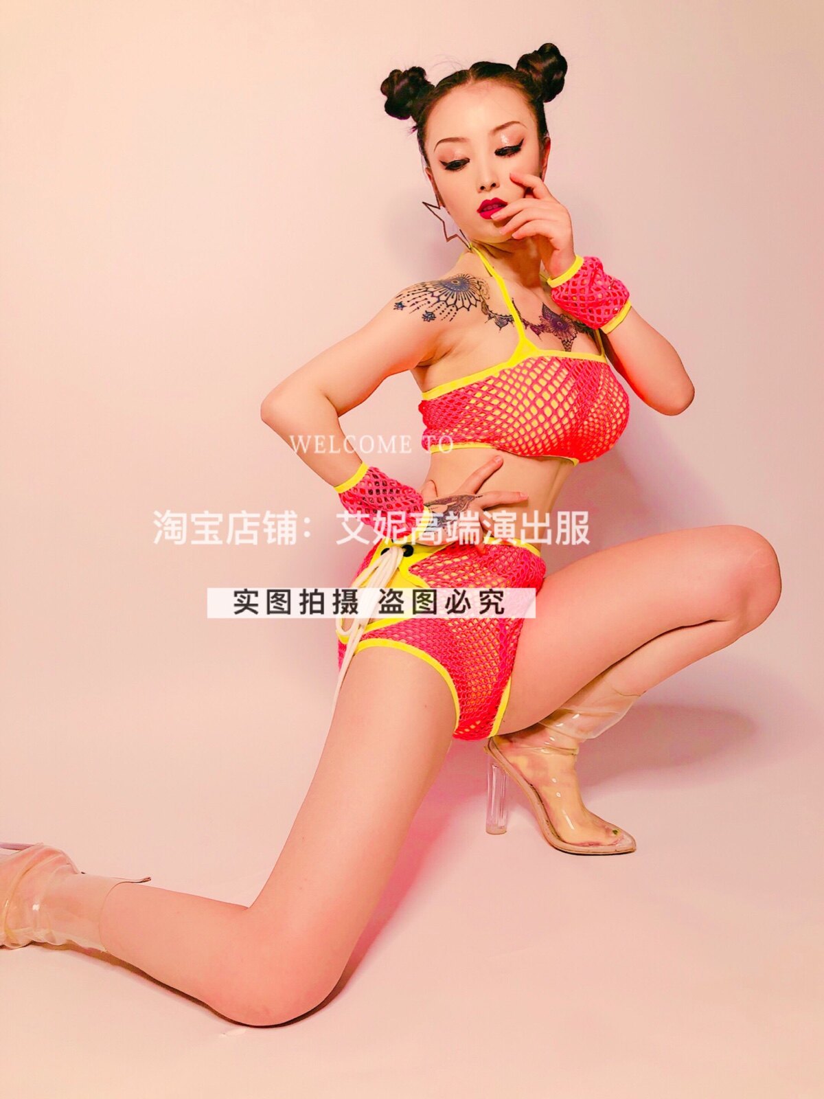 TT high-end nightclub bar singer djds dance team gogo sexy candy color grid two-piece suit costume