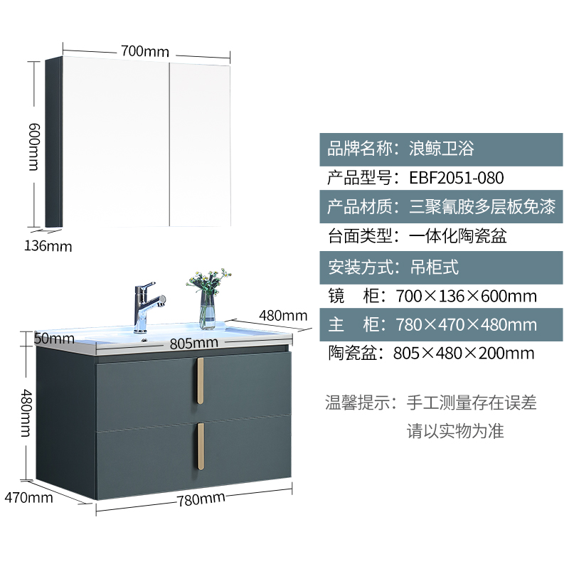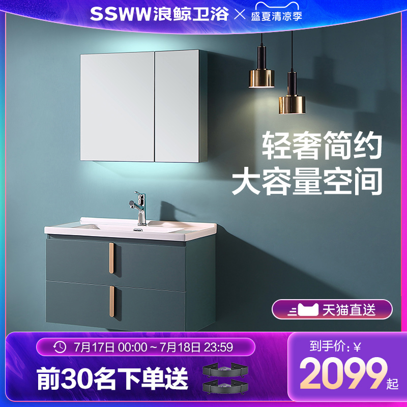 Wave whale bathroom powder room Simple light luxury with light bathroom cabinet Wash table Wash basin cabinet combination set
